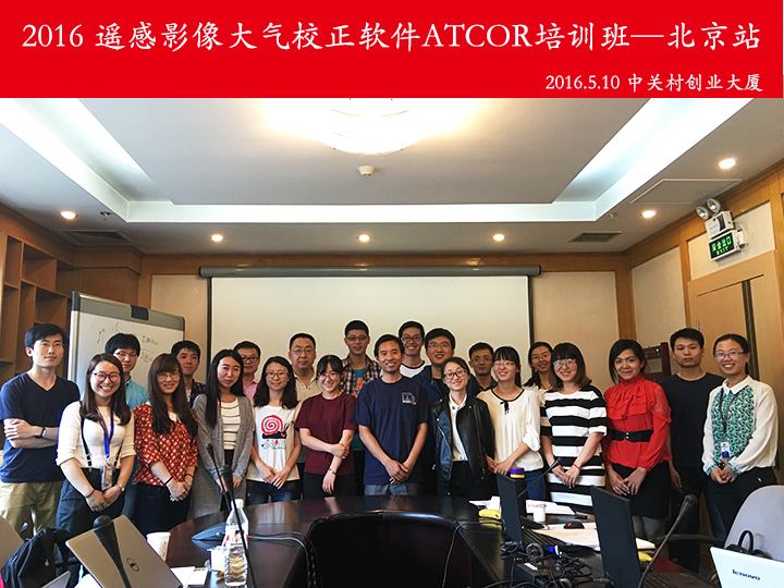 2016年5月10日-11日,北京德中天地科技有限責(zé)任公司與ReSe公司聯(lián)合舉辦的“2016 遙感影像大氣校正軟件ATCOR培訓(xùn)班—北京站”在海淀創(chuàng)業(yè)園區(qū)內(nèi)的中關(guān)村創(chuàng)業(yè)大廈第二會議室順利舉辦。本次活動共有來自新疆、山東、江蘇、上海、廣州、天津、北京等7個省市的22位學(xué)員參加,涉及行業(yè)有遙感、核工業(yè)、農(nóng)業(yè)、林業(yè)、海洋、測繪、地質(zhì)等。