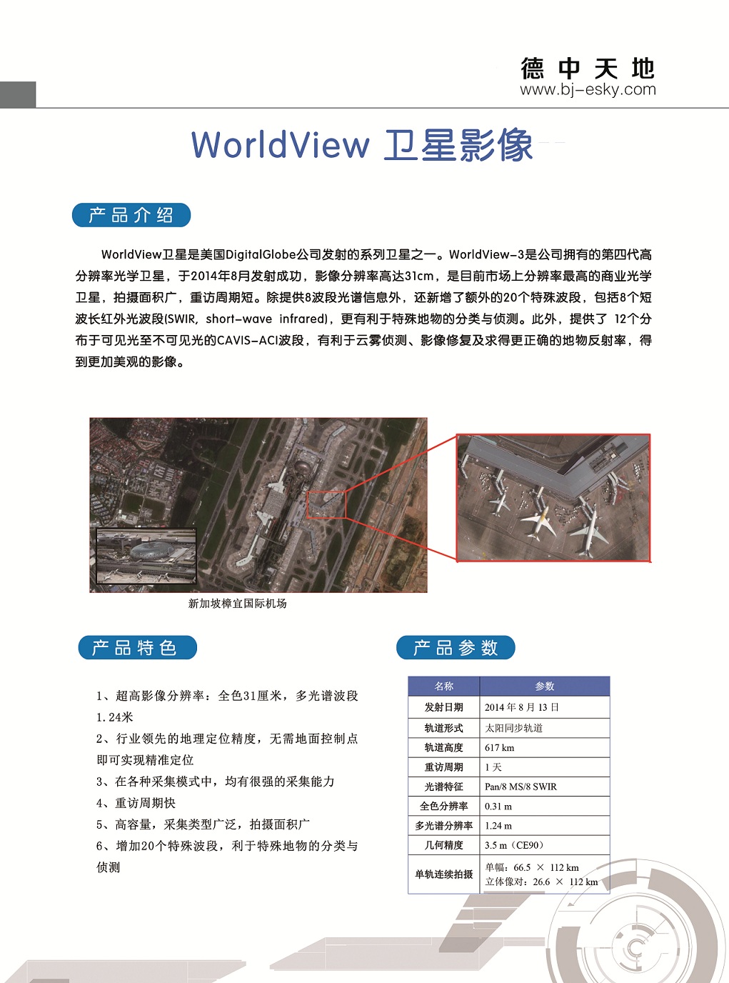 技術(shù)特點(diǎn): 最佳影像分辨率,可達(dá)30cm,使客戶能夠看到其他低分辨率不可見(jiàn)的物體 ;最佳地理定位精度;具有精度最高的多個(gè)波段光譜信息;強(qiáng)大的數(shù)據(jù)采集能力,重訪周期短;影像覆蓋全球,每日更新,超級(jí)存檔;影像時(shí)間長(zhǎng),已有超過(guò)20年的連續(xù)衛(wèi)星數(shù)據(jù)。